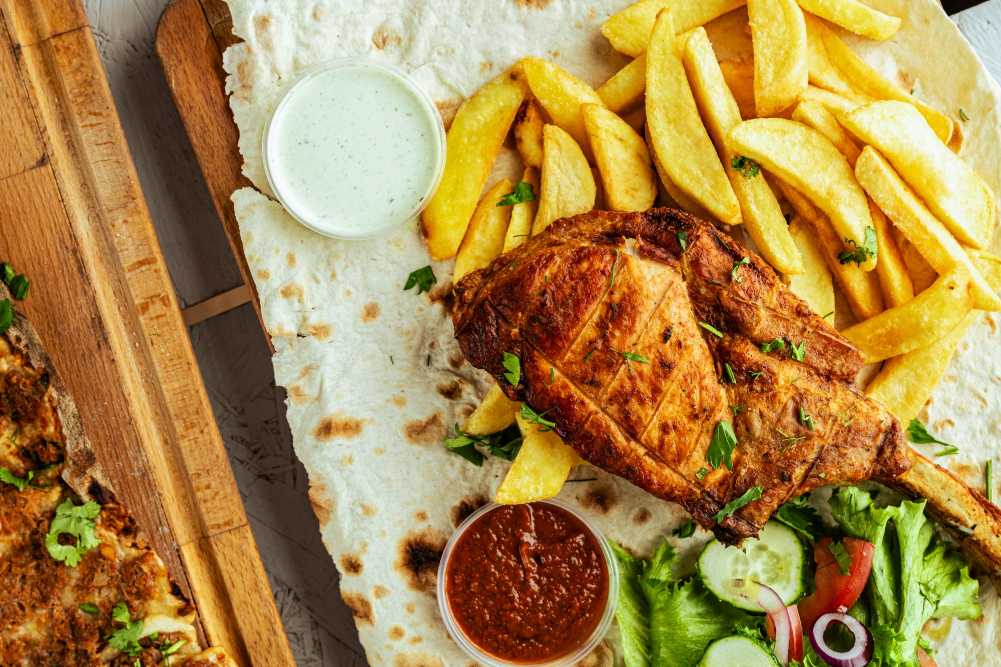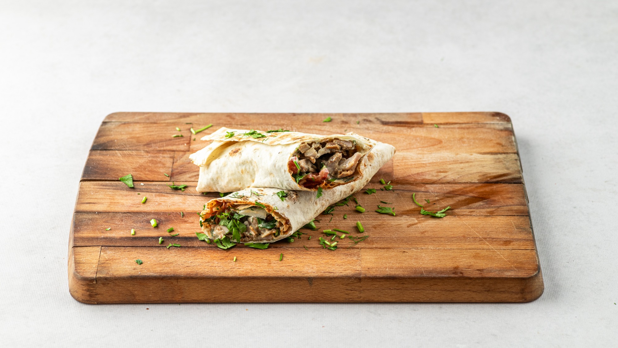 120g mielonej wołowiny zawinięty w cienki lawasz,podawany z pomidorami oraz aromatycznym miksem koperku i pietruszki,cebuli.sos do wyboru.
